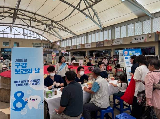 현장에서는 ▲치주질환 및 치아우식증 검진 ▲치아모형을 활용한 올바른 잇솔질 교육 ▲틀니 사용 및 세척법 교육 ▲구강보건 슬로건이 새겨진 배너와 어깨띠를 활용한 거리 캠페인 등이 진행됐다.