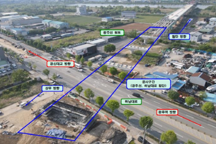 이번 부분 교통통제를 실시하는 하남대로 구간은 철도 광주선과 하남대로를 횡단하는 코스로 총 연장 880m, 폭 21m 규모의 영산강대교(가칭)를 신설하는 공사가 진행된다.
