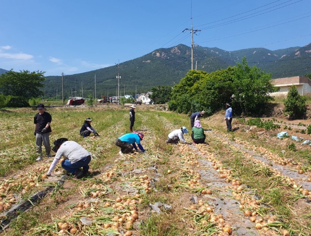 이번 일손 돕기에는 대덕읍 공직자 15명이 참여해 오산마을 양파 재배 농가를 찾아 일손을 보탰다.