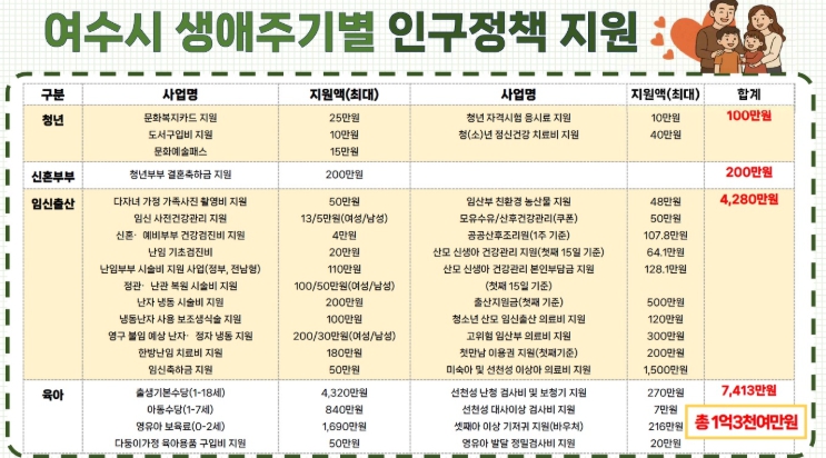 여기에 여수시민이면 누구나 받는 비현금성 지원도 있다.