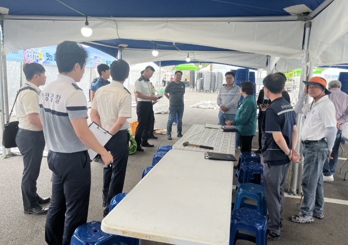 합동점검반은 ▲안전관리실무위원회에서 지적된 사항의 시정 여부 ▲구조물·전기·소방설비 등에 대한 점검 ▲많은 인파가 몰릴 것으로 예상되는 상황 시 구조·구급 통로 확보 여부 ▲행사장 내 교통안전 확보 및 안전요원 배치 확인 등 행사장 전반에 걸친 안전관리 사항을 폭넓고 세밀하게 점검했다.