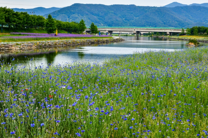 백운산에서 발원한 맑은 서천은 6월이면 버들마편초, 수레국화, 안개초 등이 어울려 피어 일상에 지친 현대인들의 발걸음을 불러 모은다.