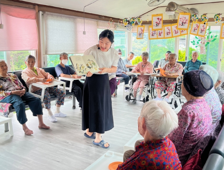 전문 강사는 복지시설을 직접 방문해 책 읽기와 책 놀이 활동을 병행하며, 올해 시니어 북스타트 선정도서인 『100 인생 그림책』(하이케 팔러 著), 『틈만 나면』(이순옥 著) 등 다양한 그림책을 활용해 인지 중심의 활동을 함께 진행하고 있다.