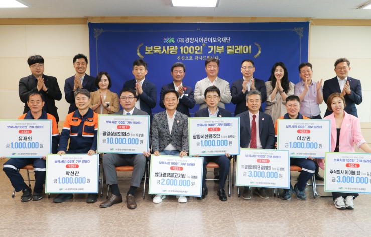 정인화 광양시장은 “재단은 그동안 광양시 영유아를 위한 다양한 사업을 꾸준히 추진해왔다”며 “이번 기부 릴레이는 이 같은 사업들이 더욱 내실 있게 운영되는 데 큰 힘이 될 것으로 기대한다”고 말했다.
