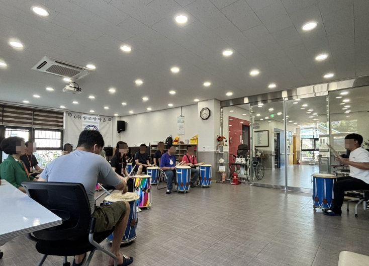 참여자들은 난타 활동을 통해 신체리듬을 익히고, 음악에 맞춰 동작을 모방하는 훈련에 참여하며, 집단 합주로 자신감과 집중력을 높이고 있다.