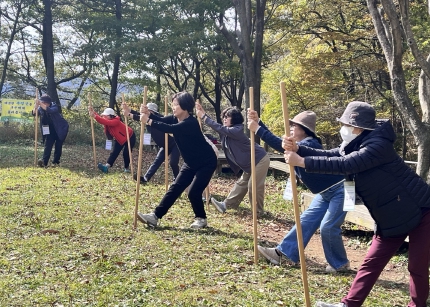 세부적으로는 숲속에서 소도구를 활용한 근력운동, 자연물을 활용한 액자 만들기, 아로마요법(테라피), 오감 자극 걷기 체험 등으로 마련됐다.