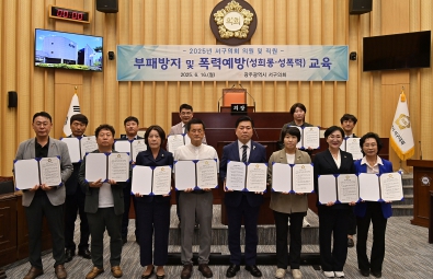 한편 서구의회는 매년 청렴 및 인권 교육을 정례화하고 있으며 올해는 전 직원과 의원을 대상으로 한 통합 교육을 실시 함으로써 조직 내 일체감과 공감대를 강화했다. 앞으로도 지속적인 역량강화 교육을 통해 ‘청렴한 서구, 존중받는 의회’구현에 앞장설 계획이다.