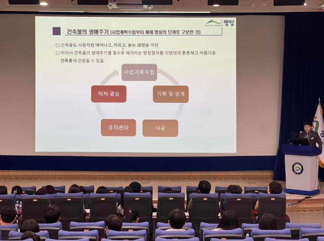 두 강사는 ▲회계 법령 및 용어 정리 ▲품의 작성 및 지출 증빙 요령 ▲예산 이용·전용·성립 전 예산 활용 ▲공사 절차 및 설계 내역서 작성 등 공직 현장에서 활용할 수 있는 실무 지식을 전했다.