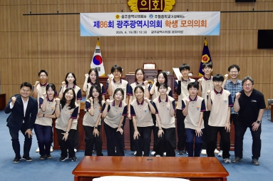 한편, 광주광역시의회는 2005년부터 광주광역시교육청에서 대상 학교를 추천받아 학생 모의의회를 진행 중에 있고, 지금까지 총 86회 8,360여 명이 체험했으며, 연말에는 모의의회 참가 학생들의 우수 체험수기에 대한 시상도 할 계획이다.