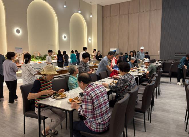 이날 처음으로 연 뷔페 나눔식당에선 돌봄, 복지 지원을 받는 우산동 주민 50여 명을 초청해 육해공 다양한 음식을 제공했다.