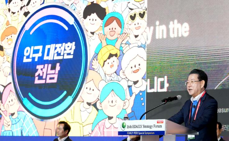 김영록 지사는 이날 서울 신라호텔에서 ‘뒤집힌 인구 피라미드 축의 전환 길을 찾다’를 주제로 열린 전략포럼에서 “지금 대한민국은 국가적 위기 수준의 저출생과 인구감소에 직면했고, 수도권 일극체제는 갈수록 심화하는 구조적 문제를 안고 있다”며 “지방을 살리는 것이 곧 국가를 살리는 길이다”고 강조했다.