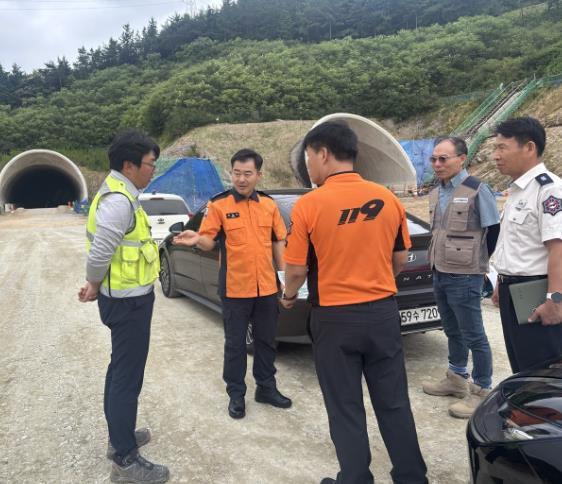 이번 점검은 집중호우로 인한 낙석, 배수 불량, 지반 침하, 토사유출 등의 위험요소를 사전에 제거하고 공사현장의 안전사고를 예방하기 위한 조치로, 터널 입구와 배수시설, 가시설의 안정성, 진출입로 안전 확보 여부 등을 중점적으로 확인했다.