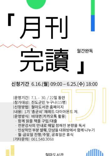 ‘월간완독’ 1기는 7월 1일부터 28일까지 운영하며, 재러드 다이아몬드의 '총, 균, 쇠'를 함께 읽을 예정이다.
