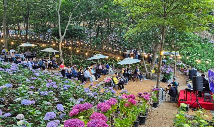 음악회는 100만 송이의 수국으로 조성된 꽃동산에서 열렸으며 ‘국악앙상블 아리락’의 퓨전국악공연과 지역 주민들의 오카리나, 색소폰 연주회, 라이브 공연 순으로 진행됐다.