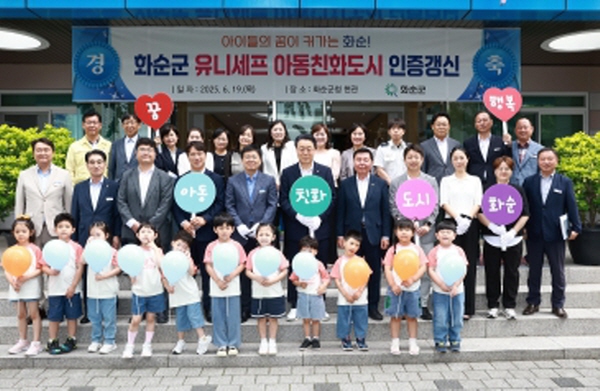 이날 현판식에 참여한 구복규 화순군수는 “아동친화도시 인증은 아동을 사회의 주체로 존중하고, 미래 세대의 주인공인 아동의 권리를 실현해 나가겠다는 약속”이라며, “이번 갱신을 계기로 아동이 정책의 수혜자가 아닌 ‘정책의 주인공’이 될 수 있도록 하고, 앞으로도 아이가 행복해하며, 아이 키우기 좋은 화순군이 될 수 있도록 다양한 사업을 추진하겠다”라고 말했다.