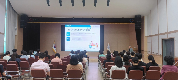 이날 교육은 전라남도장애인생산품판매시설 함창환 원장이 강사로 나서, 제도의 주요 내용과 함께 전남지역 장애인생산품 생산‧판매시설 현황, 주요 제품, 실제 구매 방법 등에 대해 설명했다.