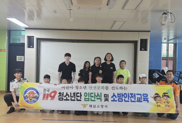 이번 발대식은 해남동초등학교 4·5·6학년 10명을 대상으로 진행됐으며, 주요 내용으로는 ▲임명장 수여 및 선서문 낭독 ▲119 청소년단 활동 안내 ▲소방안전교육 ▲기념사진 촬영 등이다.