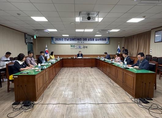 구례군은 지난 6월 11일과 20일, 2회에 걸쳐 대회 상징물 심사위원회를 통해 제65회 전남체전과 제34회 장애인체전 대회마크, 마스코트, 포스터, 구호, 표어 8개 부문에 대해 당선작과 가작을 각 1건씩을 확정했다고 밝혔다.