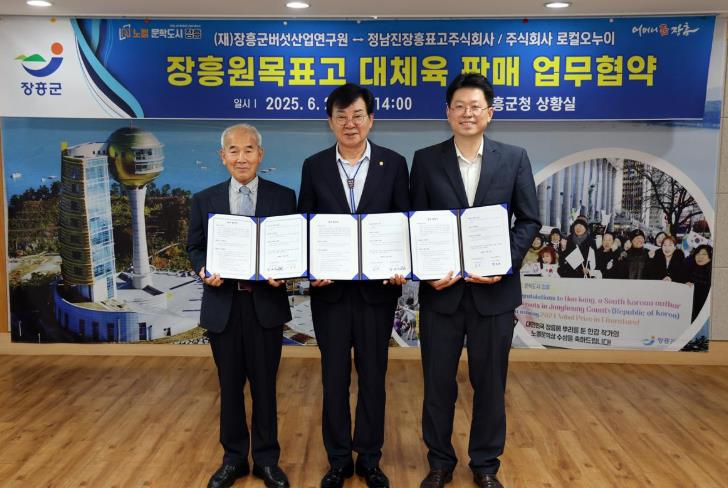 장흥군청에서 진행된 이번 협약에서는 ▲표고 대체육 연구 결과 산업화 ▲장흥 지역 특산물 활용 제품의 유통 및 판매 활성화 ▲기술 정보 및 제품 정보제공 등 다양한 영역에서 상호 협력하기로 약속했다.