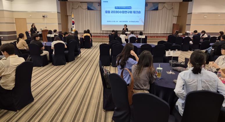 전남교육청은 이러한 2030교실 우수 사례를 공유하고, 수업 혁신 문화를 확산하기 위해 25일 보성 다비치콘도에서 ‘2025 중등 2030수업연구회 워크숍’을 개최했다.