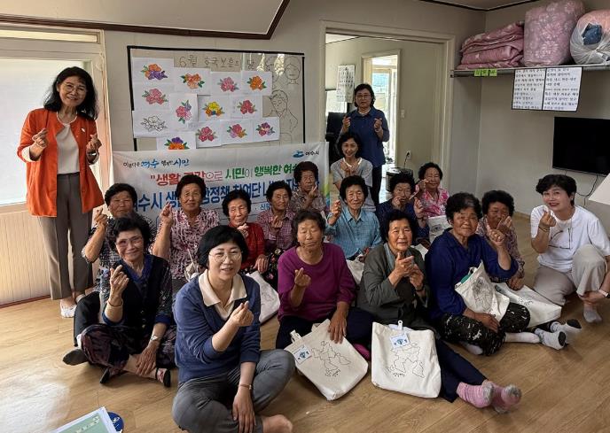 이날 여수시 생활공감정책 참여단은 6월 호국보훈의 달을 맞이해 무궁화 색칠하기, 우리 가족 이름 쓰기 등을 진행하며 어르신들의 큰 호응을 얻었다.