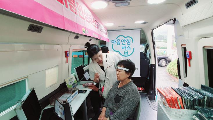 ‘찾아가는 마음안심버스’는 정신건강 서비스 접근이 어려운 지역 주민을 찾아가 ▲정신건강 스크리닝 및 상담 ▲옴니핏(우울, 스트레스검사) ▲가상현실 힐링체험(VR명상) ▲정신건강 고위험군 선별 및 정신건강 상담 등 1대1 심리지원 서비스를 제공하는 프로그램이다.