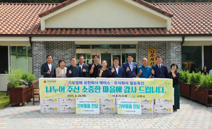 이번 전달식은 (유)에이스(대표 서진)와 ㈜일등축산(대표 김학선)의 후원으로 개최됐으며 이재남 의장을 비롯한 김관용 부의장, 조영미 행정복지위원장, 김해원 농업건설위원장 등 나주시의회 의원들이 방문해 나주지역자활센터 등 관내 사회복지 시설 10곳에 한우 사골과 잡뼈를 담은 200여 박스를 전달하며, 시설 관계자들의 애로사항을 청취했다.