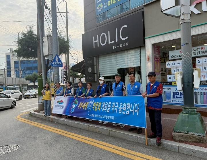 바르게살기운동 회원들은 더운 날씨에도 불구하고 교통량이 많은 퇴근 시간 시전삼거리에서 홍보 현수막과 피켓을 들고 홍보에 나섰다.