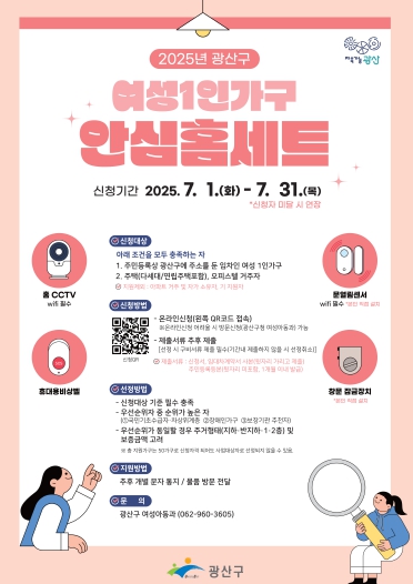 지원 대상은 광산구에 거주하는 여성 1인 가구 중 주택(다세대, 연립주택 포함) 또는 오피스텔에 거주하는 임차인이다.