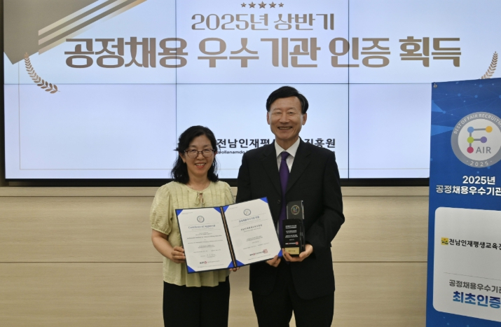전남인재평생교육진흥원은 이번 인증을 위해 최근 채용 사례를 중심으로 채용 전 과정의 투명성 확보와 규정·절차 개선에 힘썼다.