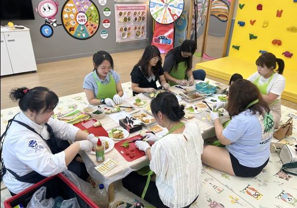 메뉴는 1가지 주재료로 두 가지 음식을 만들 수 있는 ‘닭고기를 이용한 김밥과 토르티야’였으며, 평소 육아로 건강을 살필 겨를이 없었던 양육자들이 자신을 위한 건강 간식을 만들며 힐링하는 시간을 보냈다.