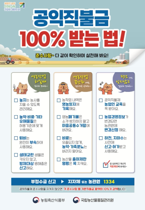 다만, 지난해까지 준수사항이었던 ‘마을공동체 활동 참여’ 항목은 올해 법령 개정으로 제외되어 농업인의 부담이 완화됐다.