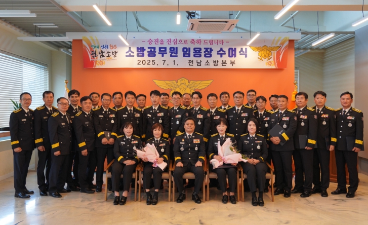 최용철 전남소방본부장은 승진자들에게 직접 계급장을 부착하고 임용장을 수여하며 축하와 함께 따뜻한 격려의 메시지를 전했다.