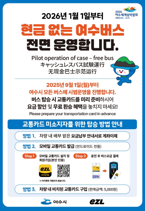 시는 현금 사용자의 혼란을 줄이기 위해 내달까지 버스 194대와 정류소 850곳에 모바일 교통카드를 발급받을 수 있는 QR코드가 들어간 안내문을 부착하고 시 누리집, 누리 소통망(SNS), 버스정보안내기(BIT), 마을 방송 등을 통해 적극적으로 홍보할 예정이다.