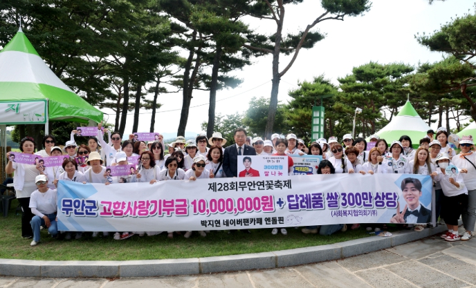 ‘엔돌핀’ 측은 지난달 26일부터 29일까지 개최된 제28회 무안연꽃축제에서 무안군에 고향사랑기부금 1,000만원을 전달하고, 300만원 상당의 답례품도 소외계층에 기부해 나눔의 의미를 더했다.