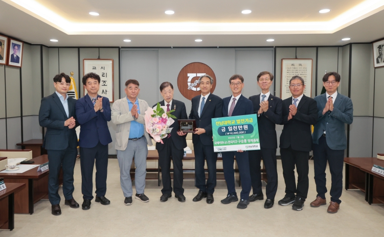 이근배 총장은 기부금 전달식에서 감사패와 꽃다발을 전달하며 “13년간 한결같은 애정으로 모교를 응원해온 구승룡 총재님께 깊이 감사드린다”며 “이러한 나눔이 전남대의 미래를 밝히는 큰 힘이 되고 있다”고 전했다.