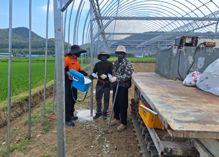 또한, 비닐하우스 설치 공사현장과 도로변 잡풀 제거 작업장 등 외부 작업자들이 집중되어 있는 현장을 찾아 얼음물과 전해질 음료를 배부하고, 폭염경보 발령 시 오후 시간대에는 무리한 야외작업을 피하고 귀가하여 충분한 휴식을 취할 수 있도록 안내했다.
