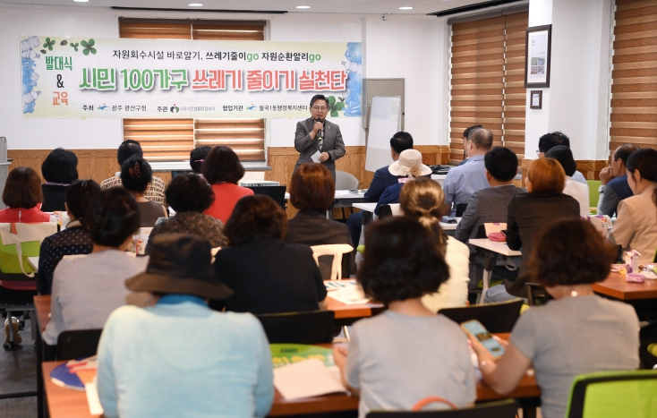 쓰레기 줄이기 시민실천단은 광산 시민 100여 명이 지속 가능한 자원순환 실천 조직 기반을 구축하고, 시민사회 등과 함께 자원순환 실천 운동을 통해 재활용 실천 분위기를 조성하자는 취지다.