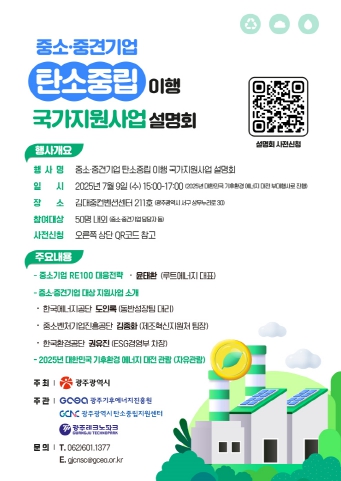 한편 이번 설명회는 ‘2025 대한민국 기후환경에너지 대전’의 부대행사로 열리며, 지역 내 기업 및 업무 담당자들은 누구나 참여할 수 있다.