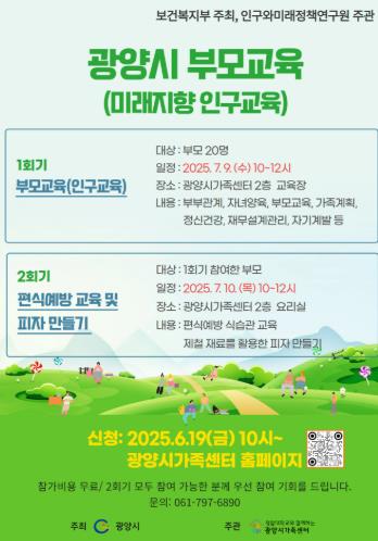 이번 교육은 보건복지부와 광양시가 공동 주최하고, 인구와미래정책연구원과 광양시가족센터가 공동 주관한다.