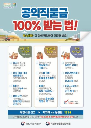 농업인은 이번 점검 항목 외에도 공익기능 증진 교육 이수 등 나머지 13개 준수사항을 실천해야 한다.