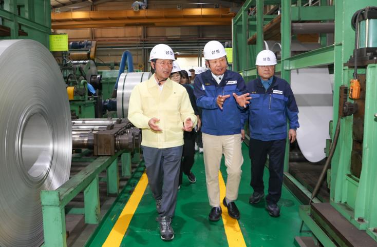 세 번째로는 2024년 AI 자율제조 선도프로젝트 공모사업에 선정된 ㈜성원을 방문했다. 정 시장은 스테인리스 강관 제조 공정과 자율제조 프로젝트에 대한 설명을 들은 뒤, 주요 공정을 살폈다.