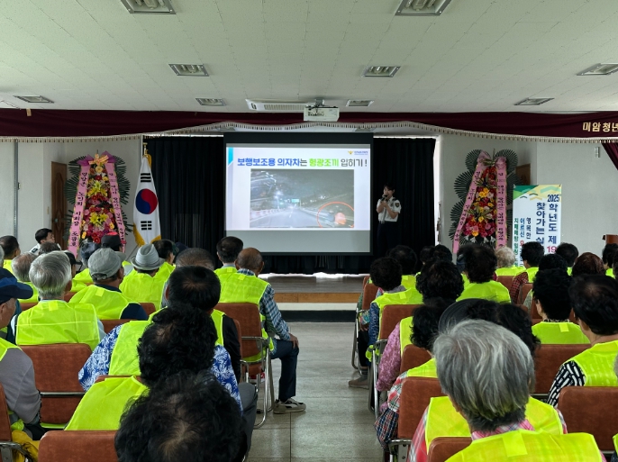 교육내용으로는 △농기계 안전수칙, △보행 시 주의사항, △야간 시인성 확보의 중요성 등을 설명하고 형광조끼, 안전 반사지, 야광 지팡이 등 1,500여 점의 안전용품을 배부했다.