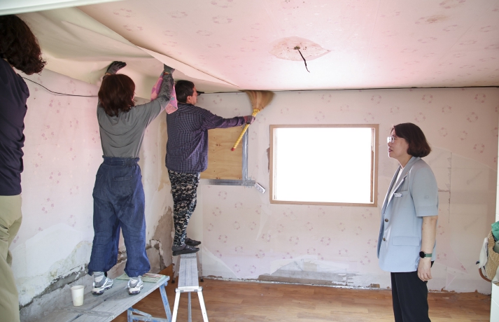 8일 영암군의 소개로 이승섭, 김영자 씨 등 5명의 자원봉사자들은, 미암면의 한 드림스타트 아동 가정을 찾아 도배를 하고, 장판을 교체해 줬다.