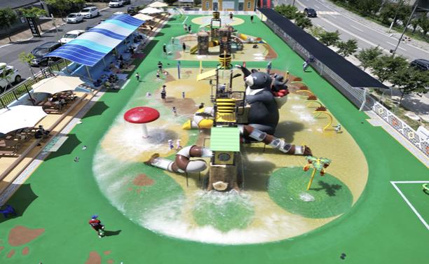 시설 면적 약 1,545㎡에 지리산반달곰을 테마로 종합 놀이대, 바닥분수 등 10종 26개의 물놀이기구와 화장실, 샤워실, 그늘막, 피크닉테이블 등 부대시설도 완비되어 이용객의 편의성과 휴식 공간도 충분히 마련되어 있다.