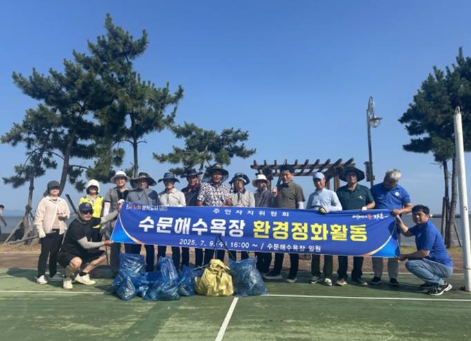 수문해수욕장 환경정화 활동에는 위원 25명이 참여하여 해변 일대의 쓰레기를 수거하고, 주변 시설을 정비하는 등 쾌적한 관광 환경조성을 위해 구슬땀을 흘렸다.