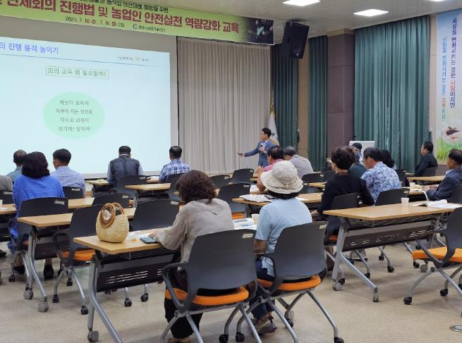 시는 7월 10일과 16일, 총 2회에 걸쳐 농업인 교육관 2층에서 ‘2025년 슬기로운 농촌 생활을 위한 농업인 단체 회의 진행법 및 농작업 안전교육’을 실시한다고 밝혔다.