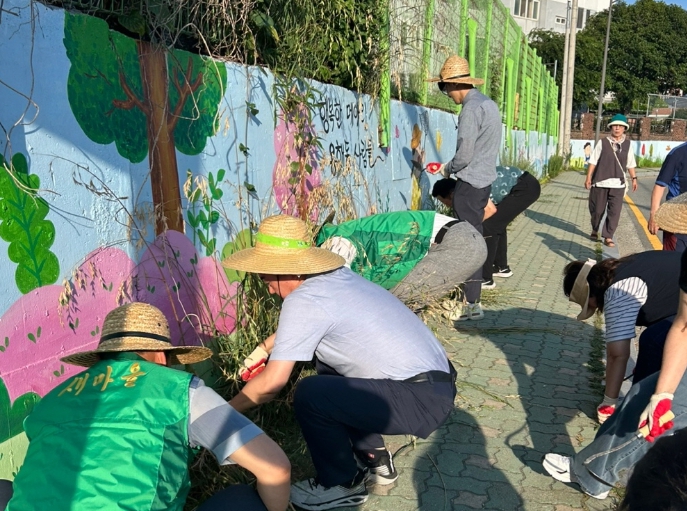 회원들은 무더운 날씨 속에서도 자발적으로 참여해 구슬땀을 흘리며 마을 가꾸기에 앞장섰다.