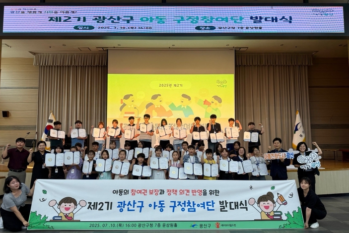 광산구는 지난 10일 구청 7층 윤상원홀에서 아동과 학부모 50여 명이 참석한 가운데 제2기 광산구 아동 구정참여단 발대식을 개최했다.