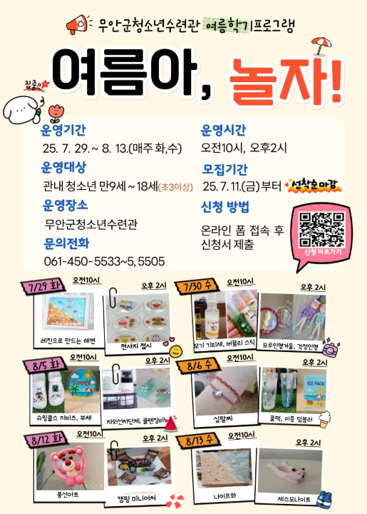 모집 대상은 무안군 관내 만 9세 이상 청소년이며, 7월 20일까지 선착순으로 신청을 받는다.